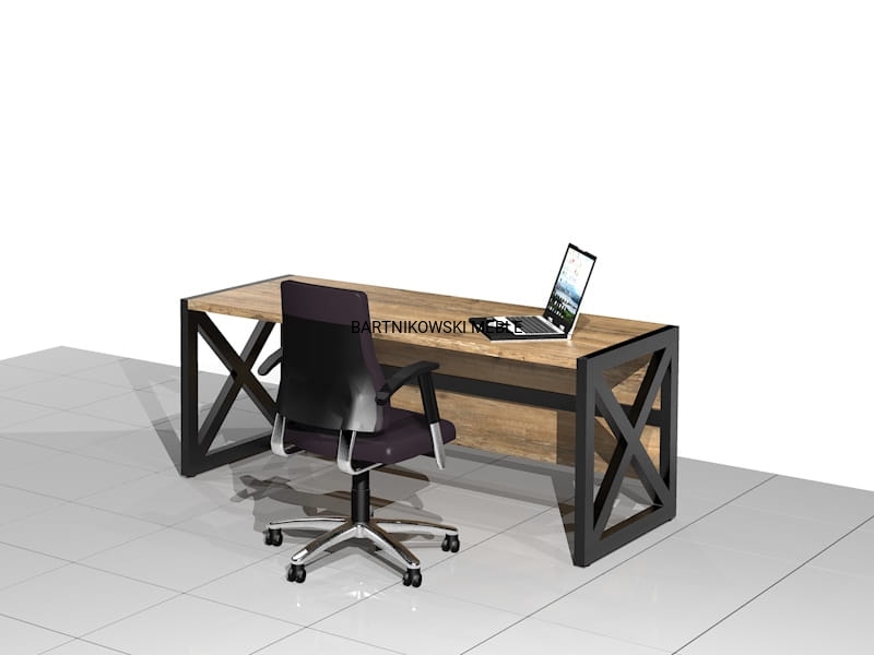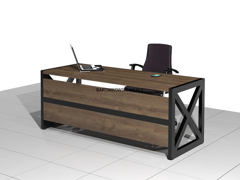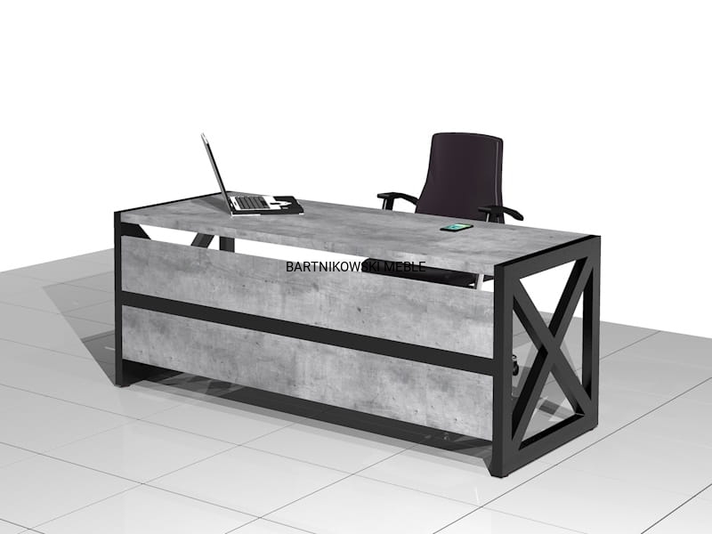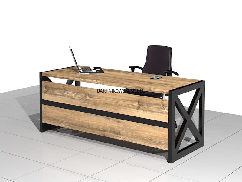 Wykonane w stylu industrialnym biurko gabinetowe BOSS-XA składa się z pogrubionego blatu i dwuczęściowej blendy osadzonych na metalowym stelażu z profilu 60 x 40 mm.