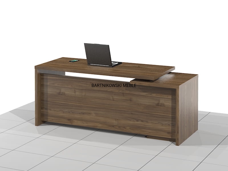 Biurko gabinetowe Dragon S to połączenie ponadczasowego designu i solidności. Zaprojektowane z myślą o prestiżowych wnętrzach biurowych, łączy w sobie elegancję i funkcjonalność. Masywna bryła biurka wsparta na zintegrowanej szafce z szufladami tworzy luksusowe i w pełni funkcjonalne stanowisko pracy, które buduje wizerunek profesjonalnego gabinetu.