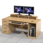 Duże biurko komputerowe GIGA-DW składa się z wnęki na komputer oraz szafki czterema szufladami, połączonych blatem i blendą. Pod blatem znajduje się duża półka klawiaturowa. Z tyłu wnęki komputerowej znajduje się szczelina wentylacyjna. Na blacie biurka nadstawka. Do biurka można zamówić przepusty kablowe i inne akcesoria.