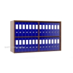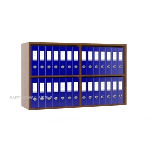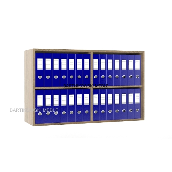 Nadstawka na szafy - otwarty regał. Wysoka na 2 lub 3 poziomy segregatorów. W środku pion wzmacniający, który przeciwdziała uginaniu się półek.