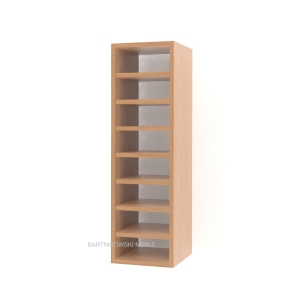 Regały nadstawki z wnękami do sortowania dokumentów - RNBX04 Wykonane są z płyty wiórowej laminowanej 18 mm. Widoczne krawędzie oklejone PCV/ABS 1 mm. Plecy białe z płyty HDF 4 mm.