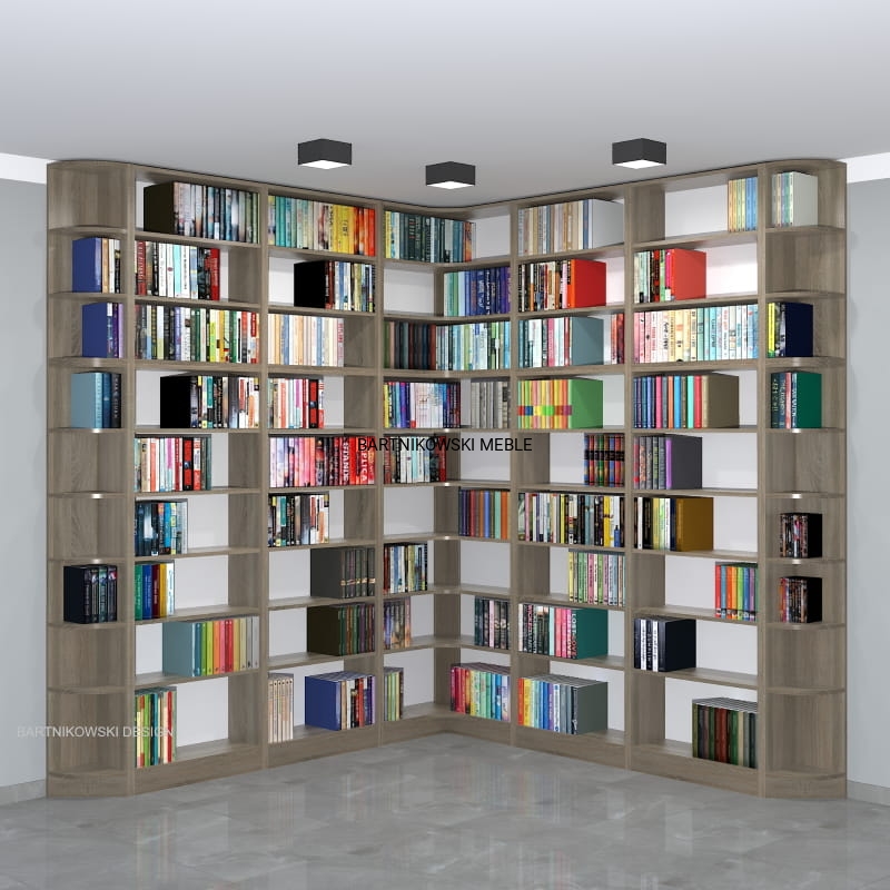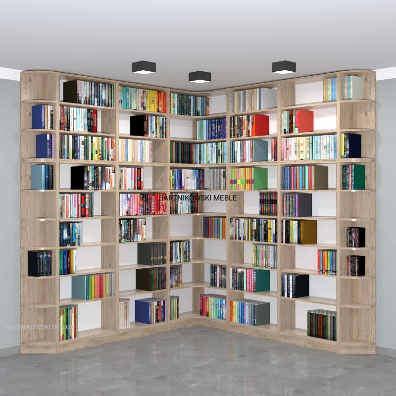 Meble na zamówienie. Regał na książki narożny - biblioteka LIBRA-NR1 - przykładowa konfiguracja:
