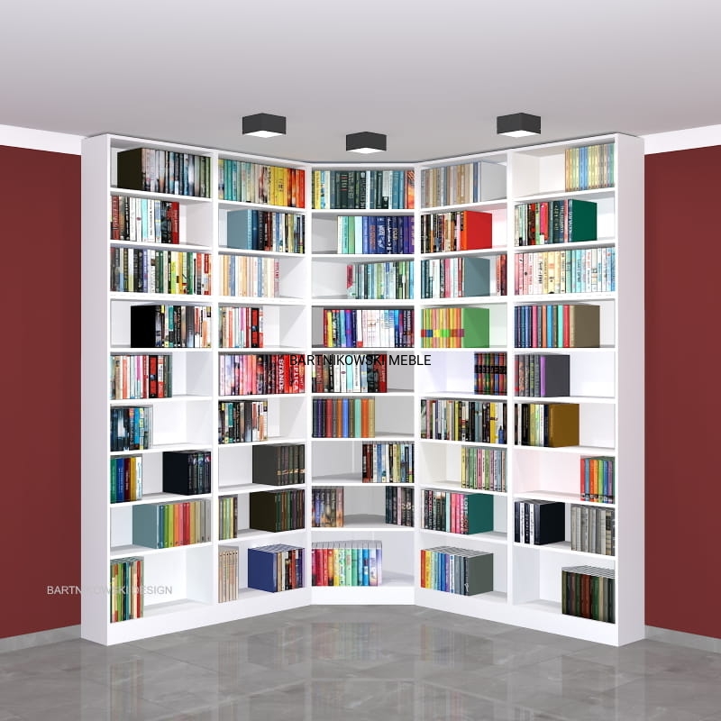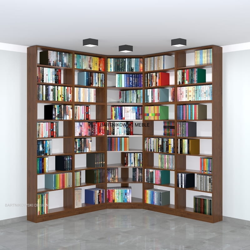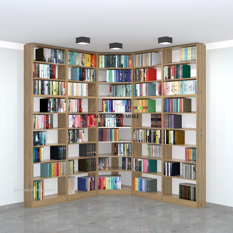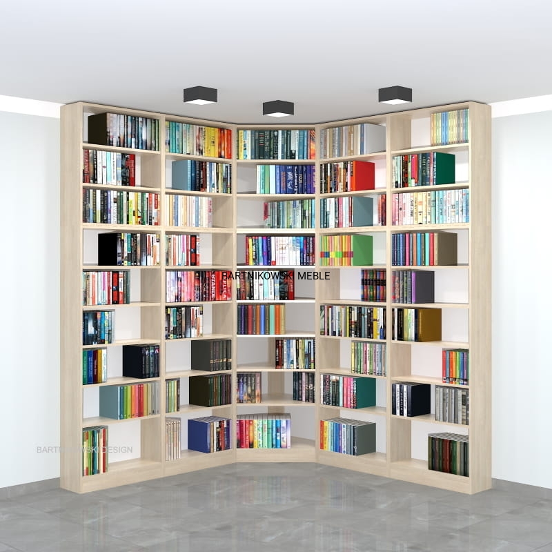 Meble na zamówienie. Regał na książki narożny - biblioteka LIBRA-NR12 - przykładowa konfiguracja: