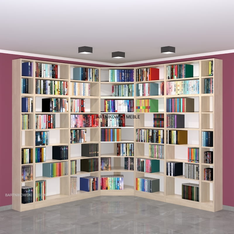 Meble na zamówienie. Regał na książki narożny - biblioteka LIBRA-NR21 - przykładowa konfiguracja: