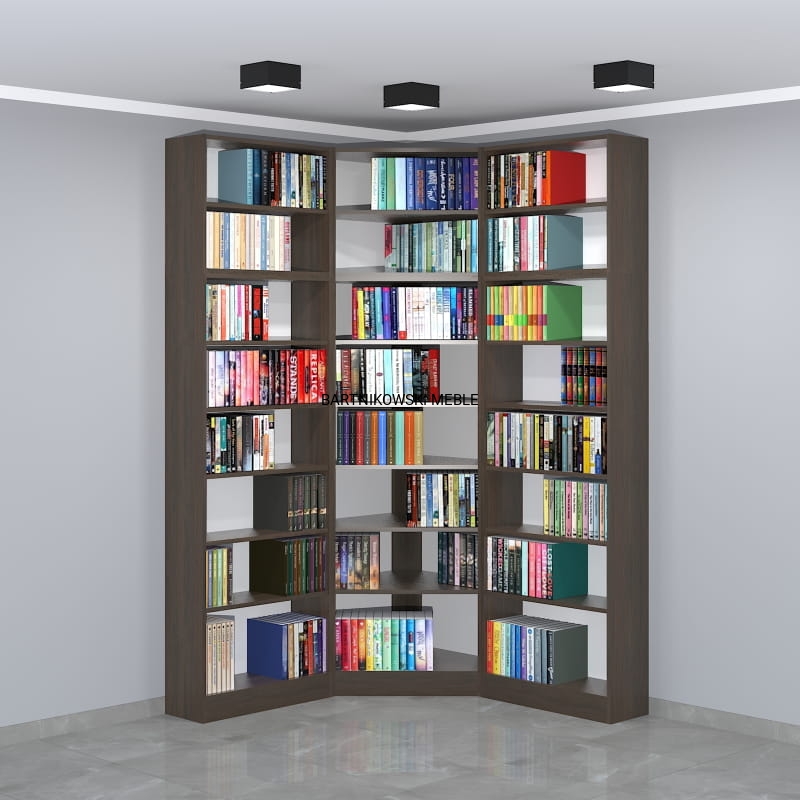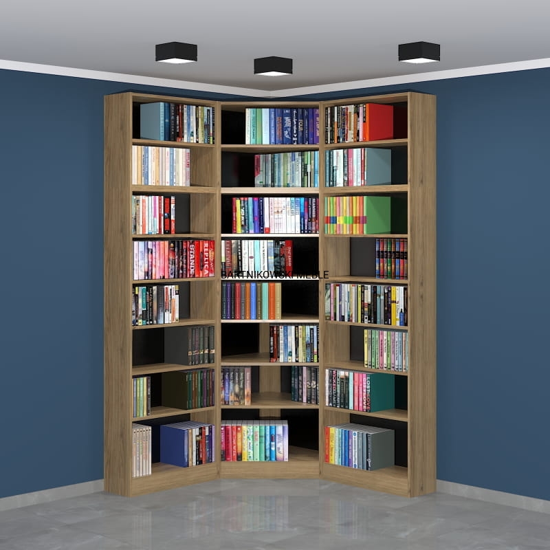 Meble na zamówienie. Regał na książki narożny - biblioteka LIBRA-NR23 - przykładowa konfiguracja: