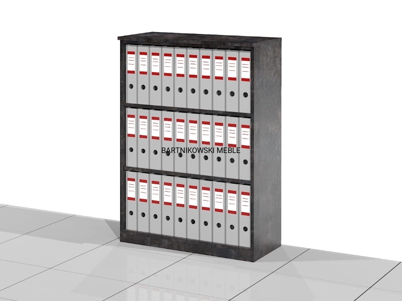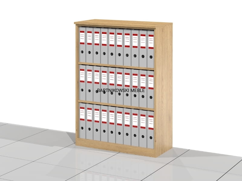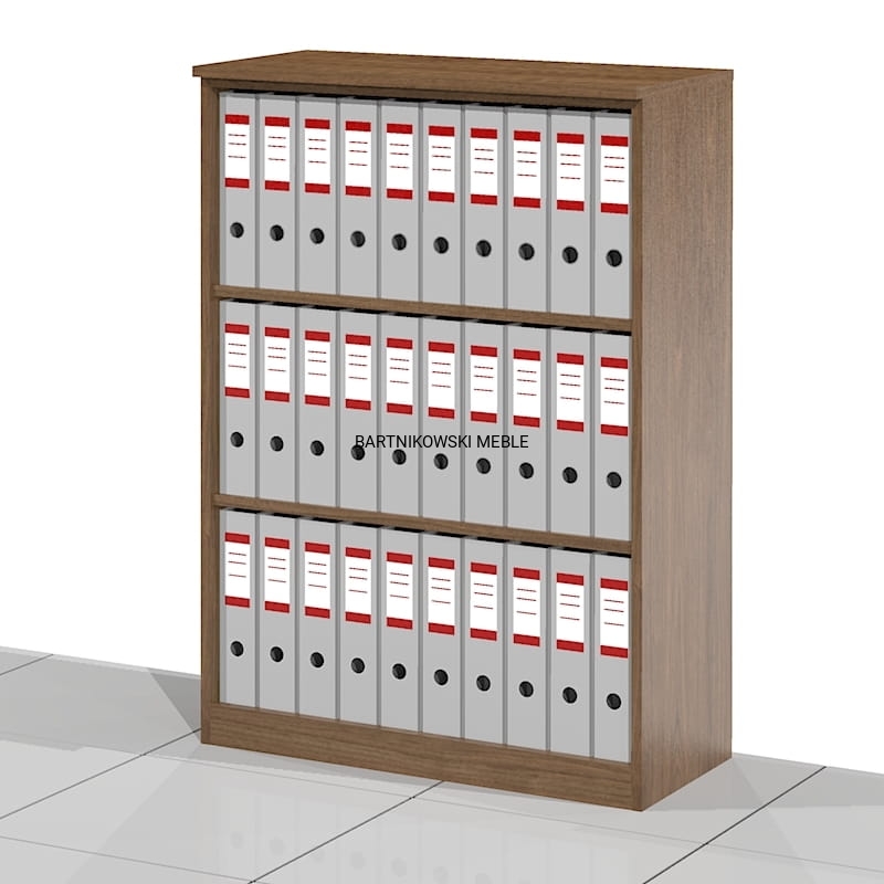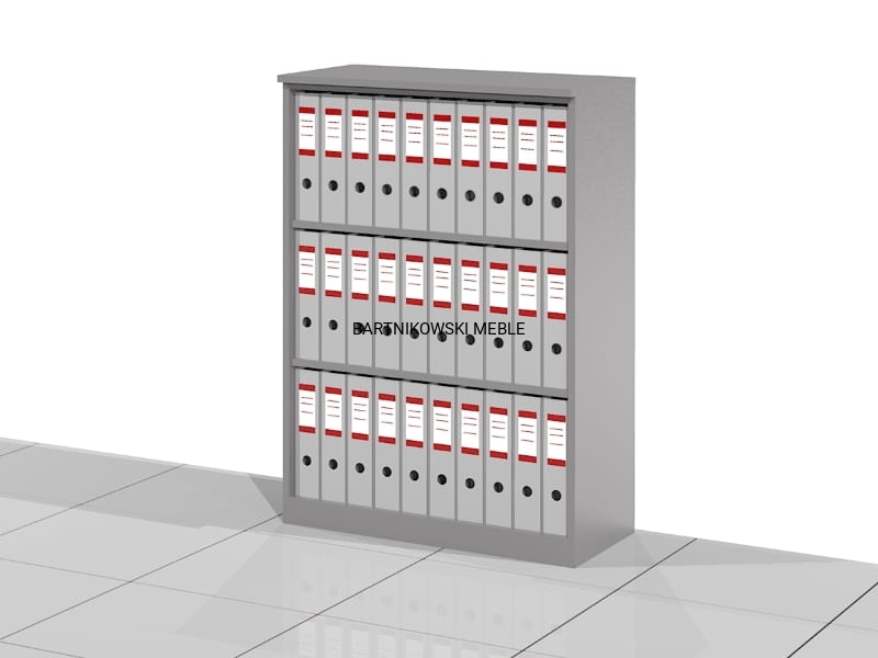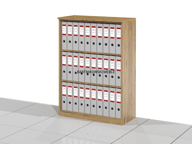 Elegancka otwarta szafa biurowa - regał ELF-RSS. Wysoki na trzy poziomów segregatorów. Różne szerokości do wyboru. Eleganckie rozwiązanie na przechowywanie segregatorów i dokumentów biurowych. Dostarczany złożony w całości.
