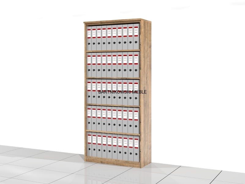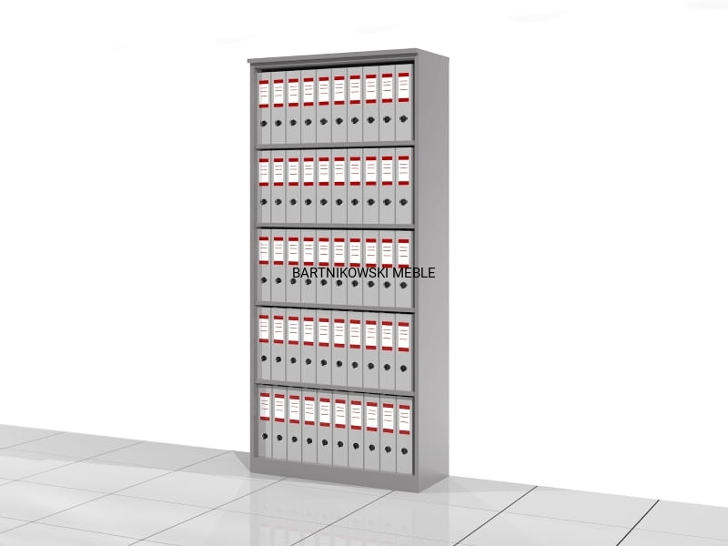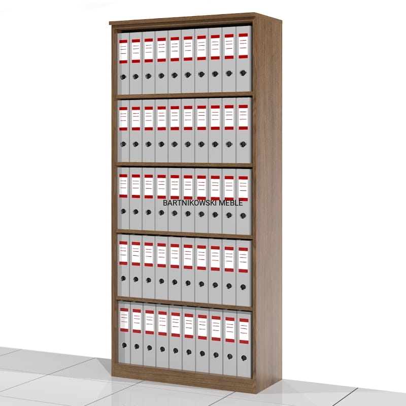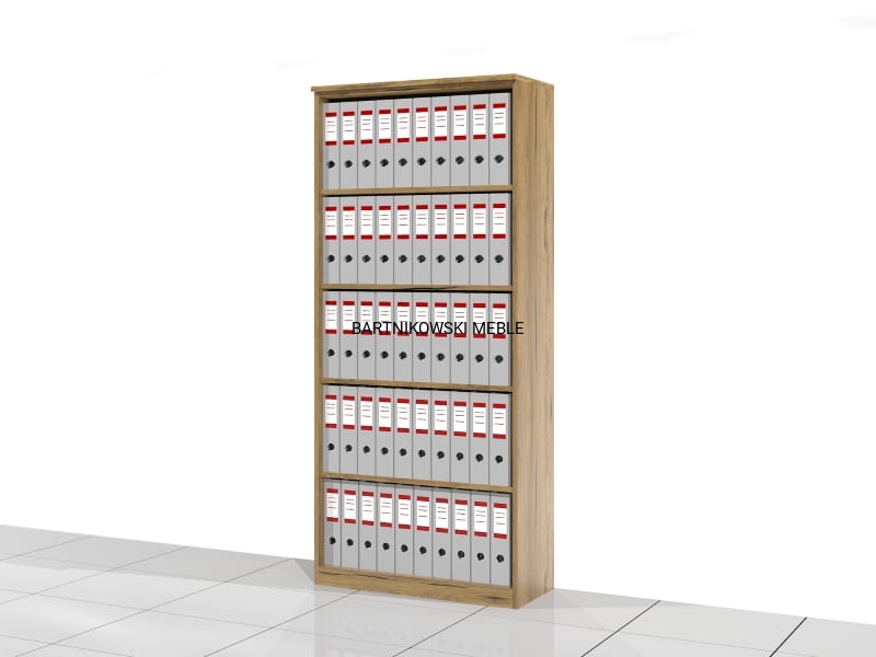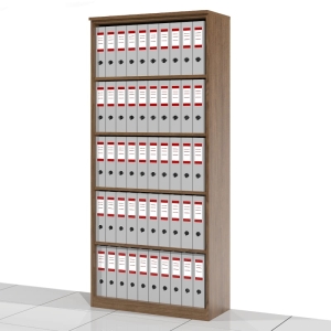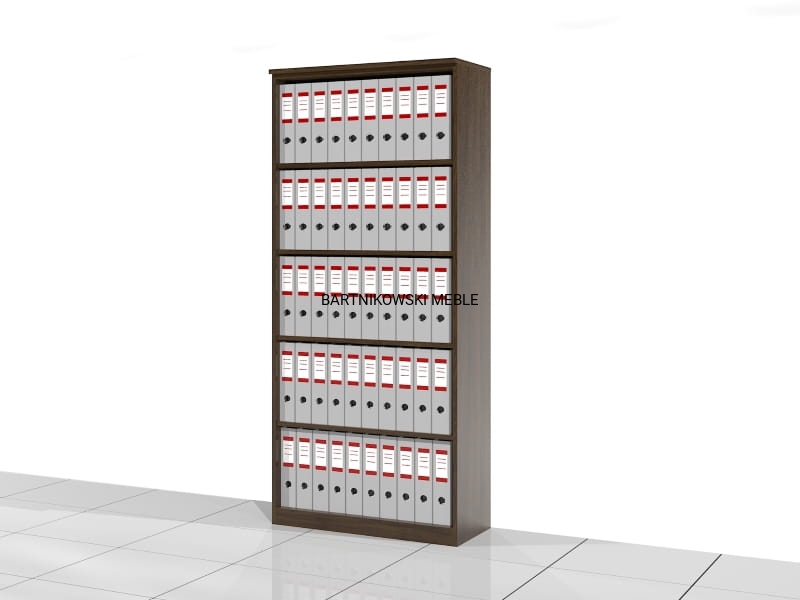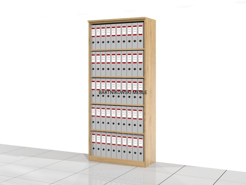 Elegancka otwarta szafa biurowa - regał ELF-RSW. Wysoki na pięć poziomów segregatorów. Różne szerokości do wyboru. Eleganckie rozwiązanie na przechowywanie segregatorów i dokumentów biurowych. Dostarczane złożone w całości.