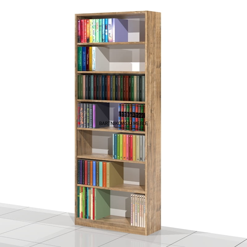 Elegancki regał książkowy o solidnej i mocnej konstrukcji. Siedem poziomów na książki. Dostarczany w całości zmontowany.