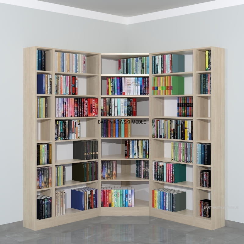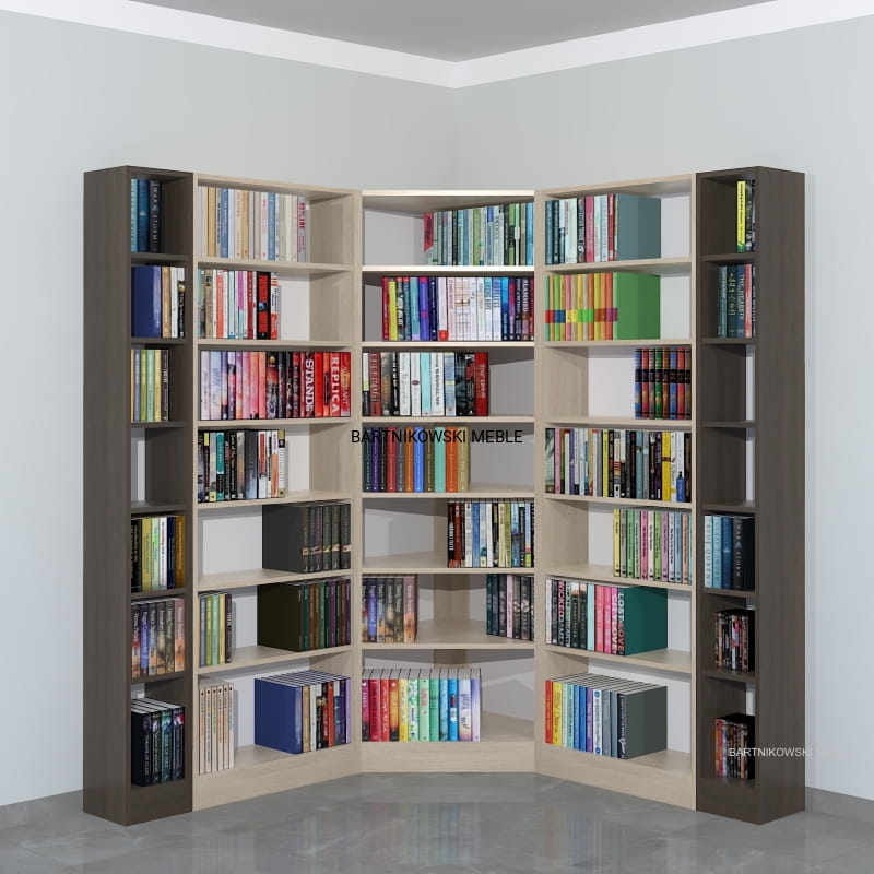 Meble na zamówienie. Regał na książki narożny - biblioteka LIBRA-NR34 - przykładowa konfiguracja:
