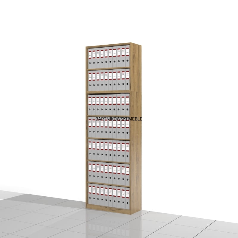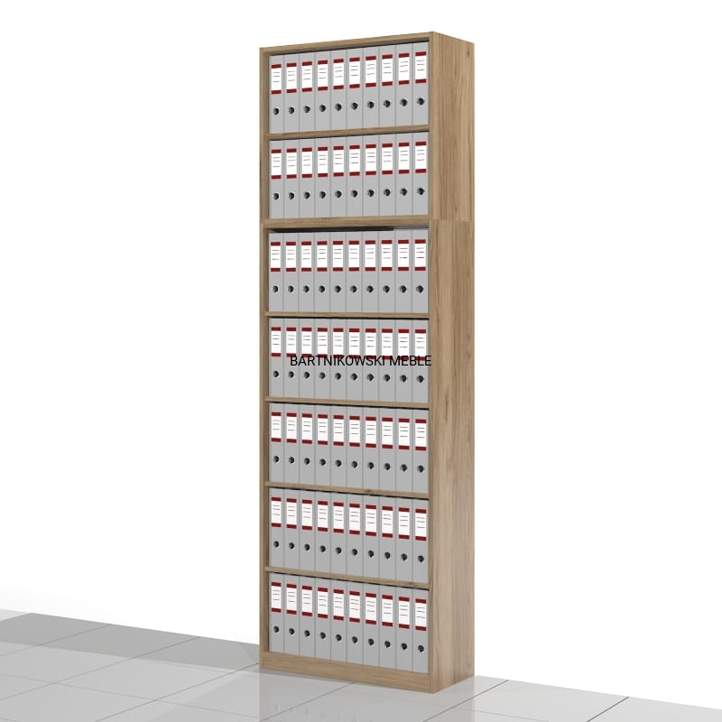 Regał biurowy otwarty RSW plus nadstawka NSX. Razem 7 poziomów na segregatory. Bardzo pojemny regał biurowy o mocnej i solidnej konstrukcji.