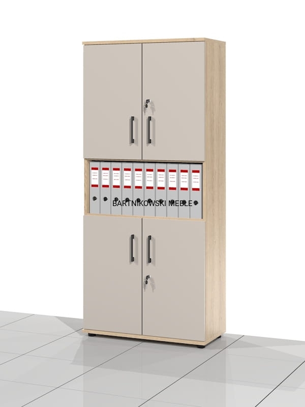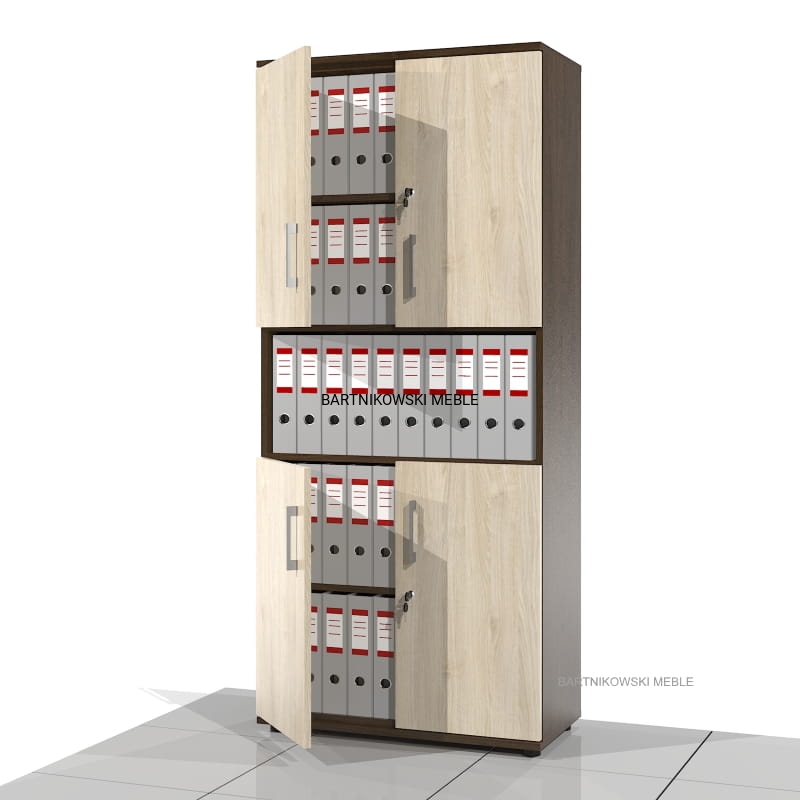 Wysoka na pięć poziomów segregatorów. Drzwi dzielone 2 poziomy, wnęka otwarta, 2 poziomy. Różne szerokości do wyboru.