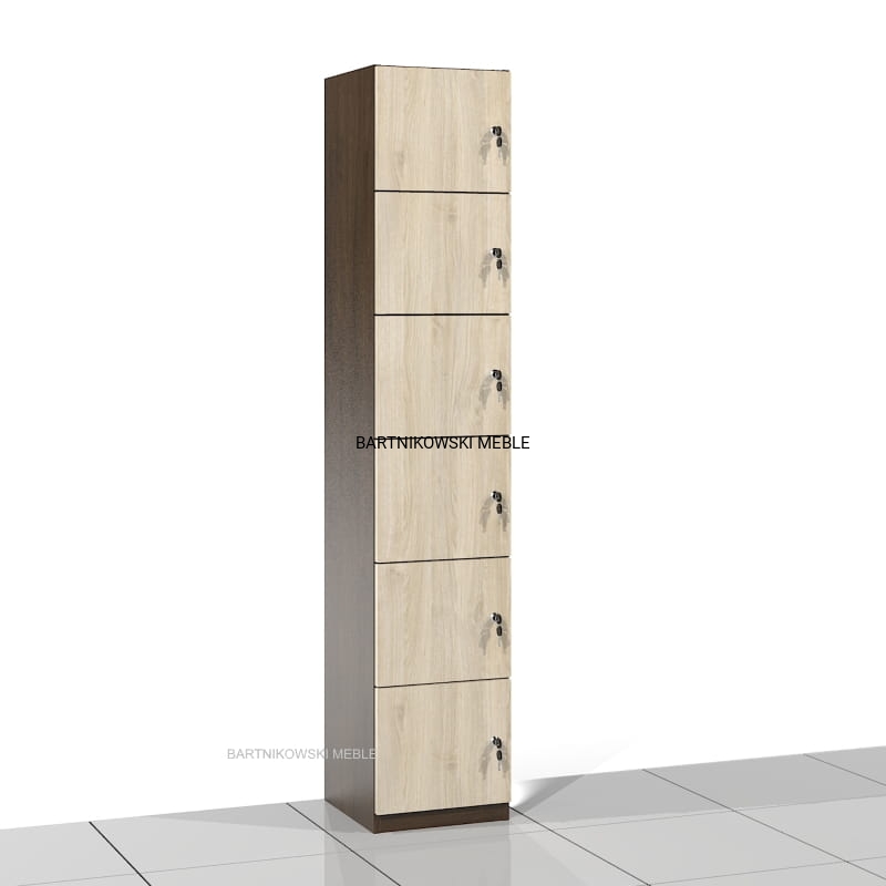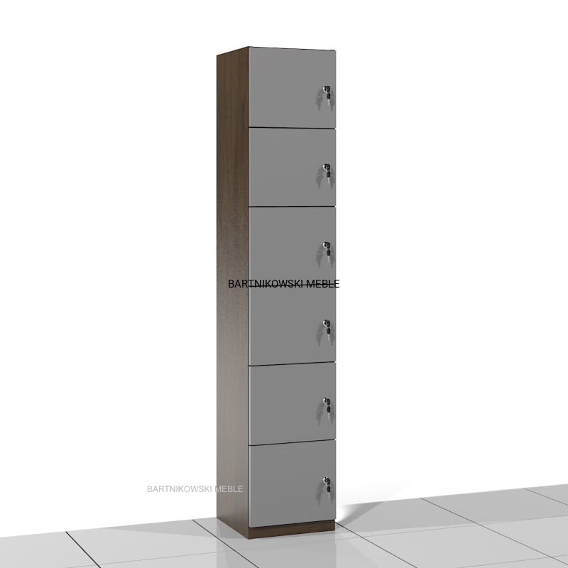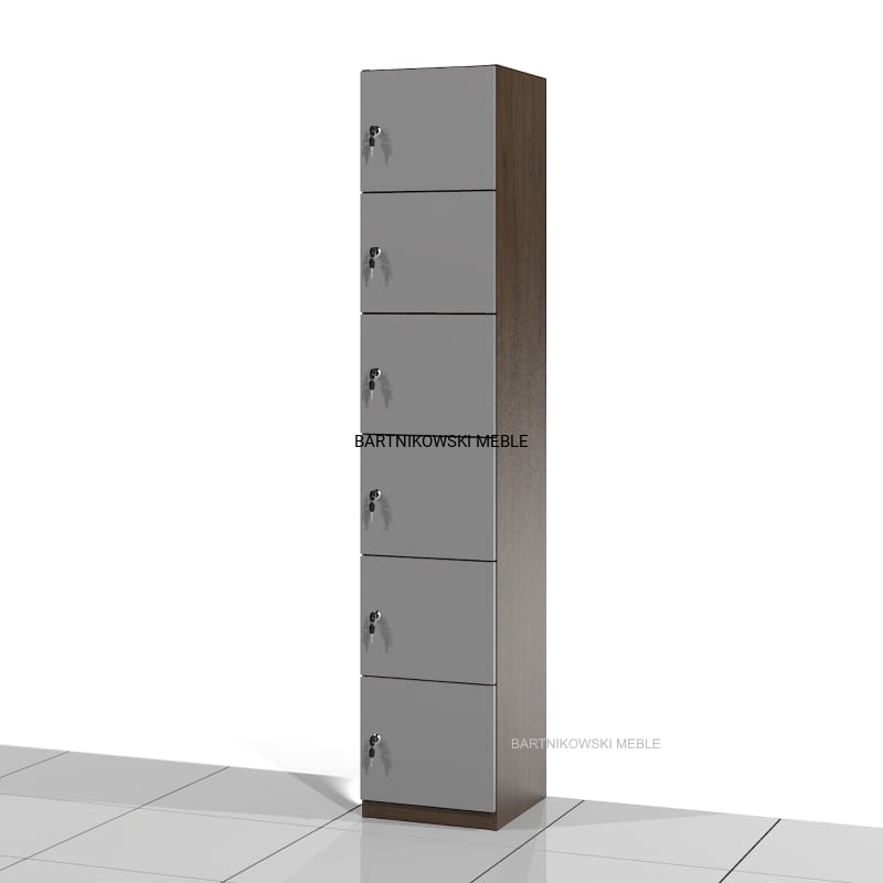 Szafa socjalna SSC-06 posiada 6 wnęk zamykanych drzwiami na zamek. Wymiary wnęki: 27h x 32 x 36 cm.