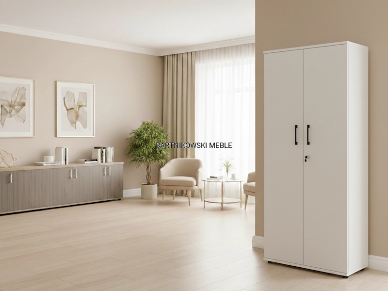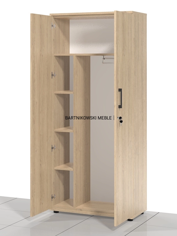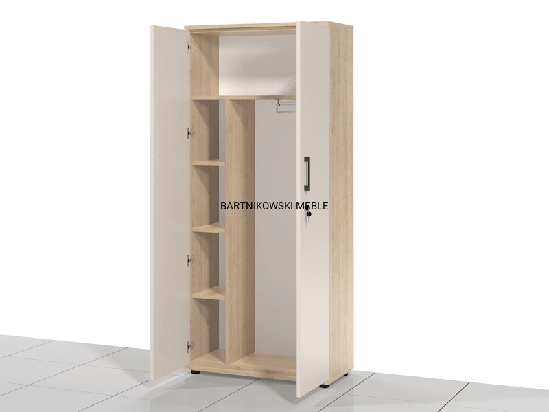 Wysoka na pięć poziomów segregatorów. Część odzieżowa szeroka na 60 cm z wysuwanym drążkiem.